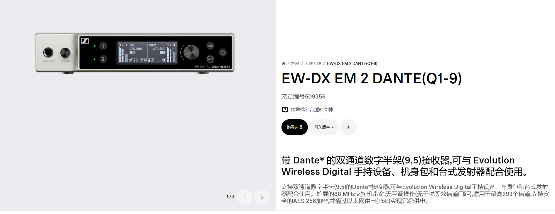 Sennheiser EW-DX无线话筒接收机(Dante)
