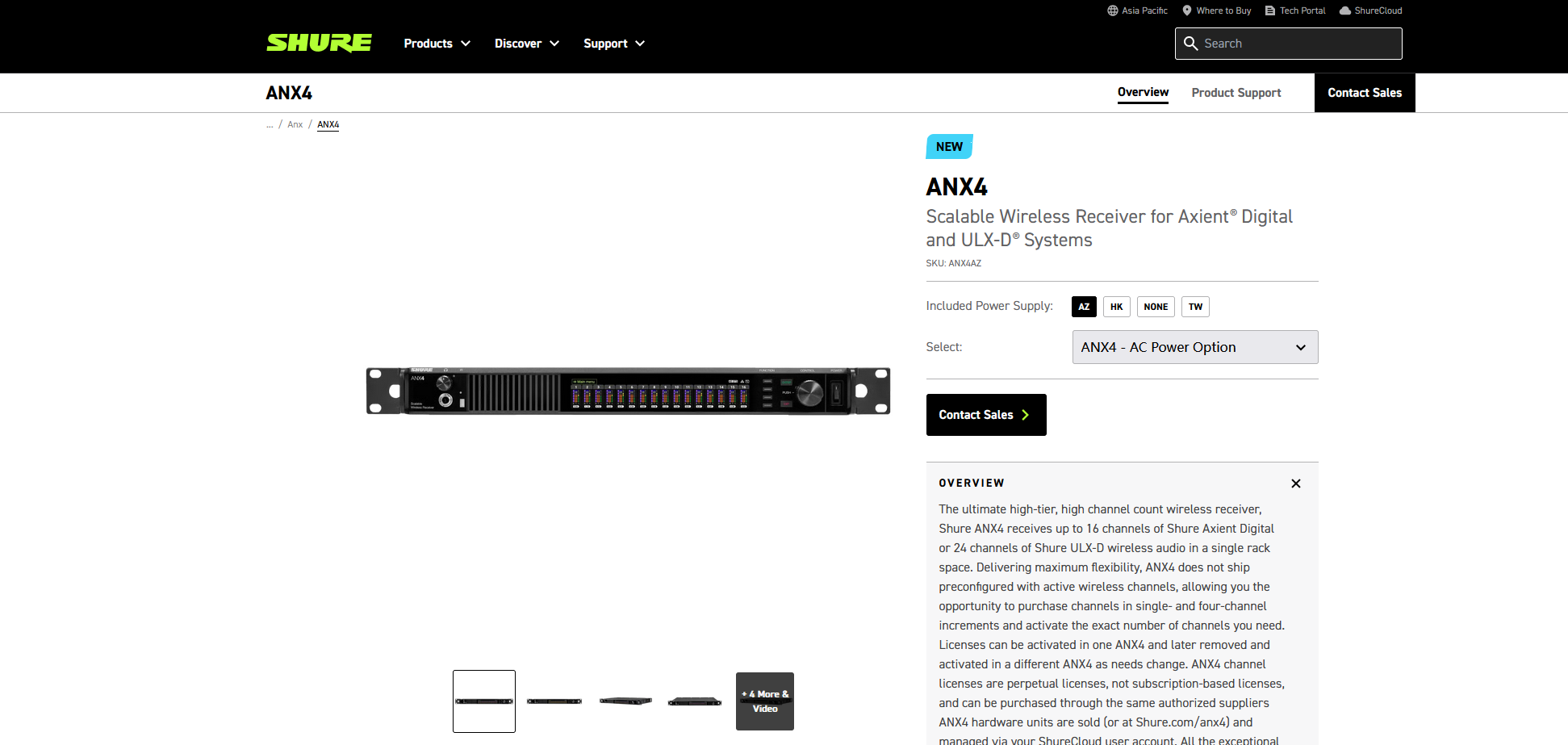 Shure ANX4 无线系统接收机(为Axient Digital 和 ULX-D 系统设计)
