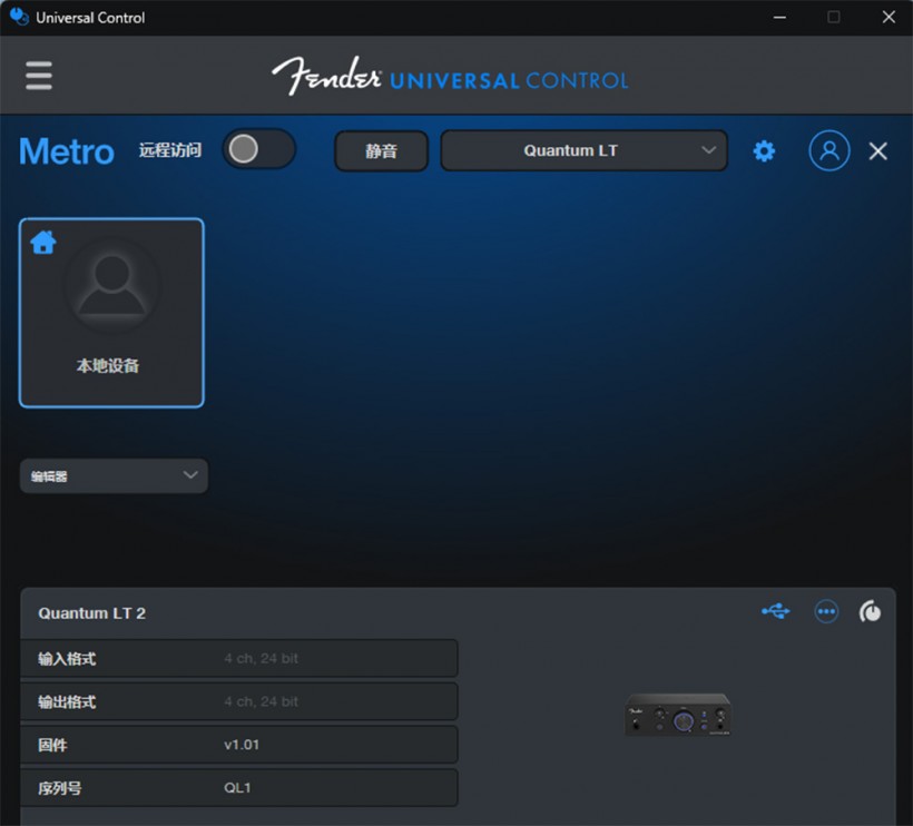 Quantum LT 2随机提供了两个软件,分别是Universal Control 以及Fender Studio Pro,前者是控制程序,后者为Fender的生态软件。