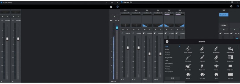 Universal Control是Quantum LT 2的控制软件,提供基本设置、通道控制等功能。支持安卓、苹果和WIN应用,其主界面见下图所示。