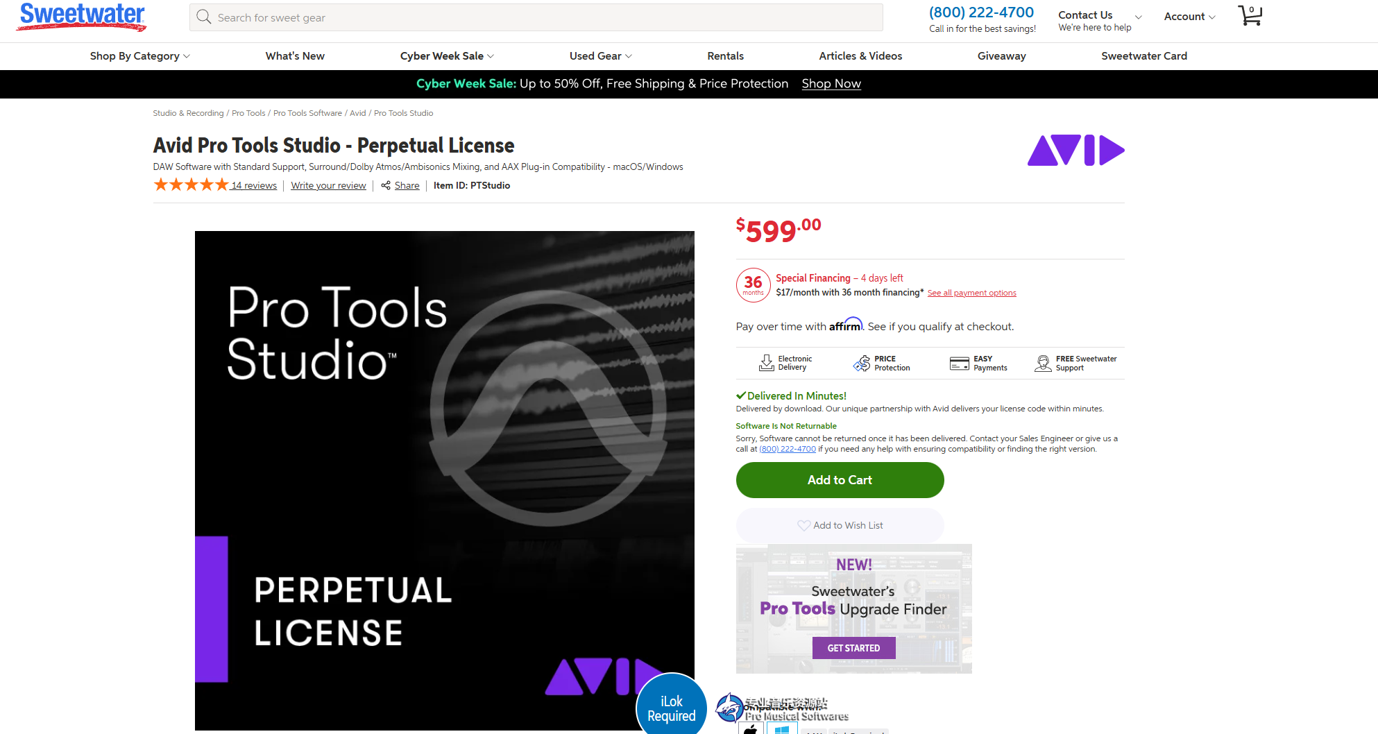 来自国外知名购物网站Sweetwater/甜水,Pro Tools软件依旧有包含支持计划的永久版授权可供购买